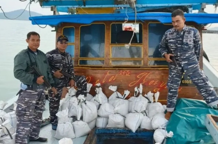 TOBOALI - Tim Trisula Unit Intel TNI Angkatan Laut (AL) Babel menggagalkan penyelundupan 143 karung pasir timah ke luar negeri pada Minggu (5/10/2025) dini hari. Danlanal Babel Kolonel Laut (P) Ipul Saepul mengatakan penangkapan kapal kayu bermuatan 143 karung pasir timah atau sekitar tujuh ton tersebut, bermula dari Tim Trisula Lanal Kepulauan Babel mendapatkan informasi adanya penyelundupan pasir timah yang akan dibawa menggunakan sebuah kapal kayu bernama KM Beta Jaya 02. Kemudian, tim bergerak menuju lokasi yang diduga kuat koordinat dari kapal itu sedang berada dengan titik koordinat yakni 3 00 13" S 106 70' 00"T, atau di seputaran perairan Tukak Sadai Kabupaten Bangka Selatan.