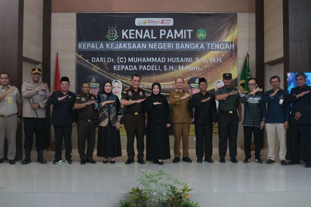 KOBA — Bupati Bangka Tengah, Algafry Rahman, menghadiri kegiatan kenal pamit Kepala Kejaksaan Negeri (Kejari) Bangka Tengah yang digelar di Aula Kantor Kejaksaan Negeri Bangka Tengah, Senin (27/10/2025). Acara tersebut berlangsung hangat dan penuh keakraban, dihadiri oleh jajaran Forkopimda, pejabat daerah, serta unsur masyarakat.