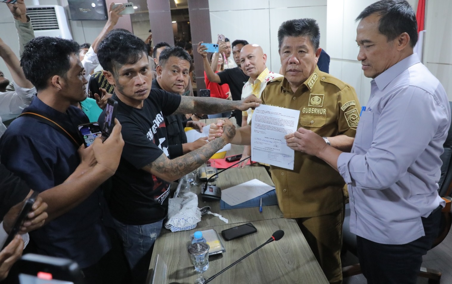 penandatanganan berita acara oleh pihak aliansi masyarakat penambang, Gubernur, Forkopimda, dan PT Timah Tbk.
