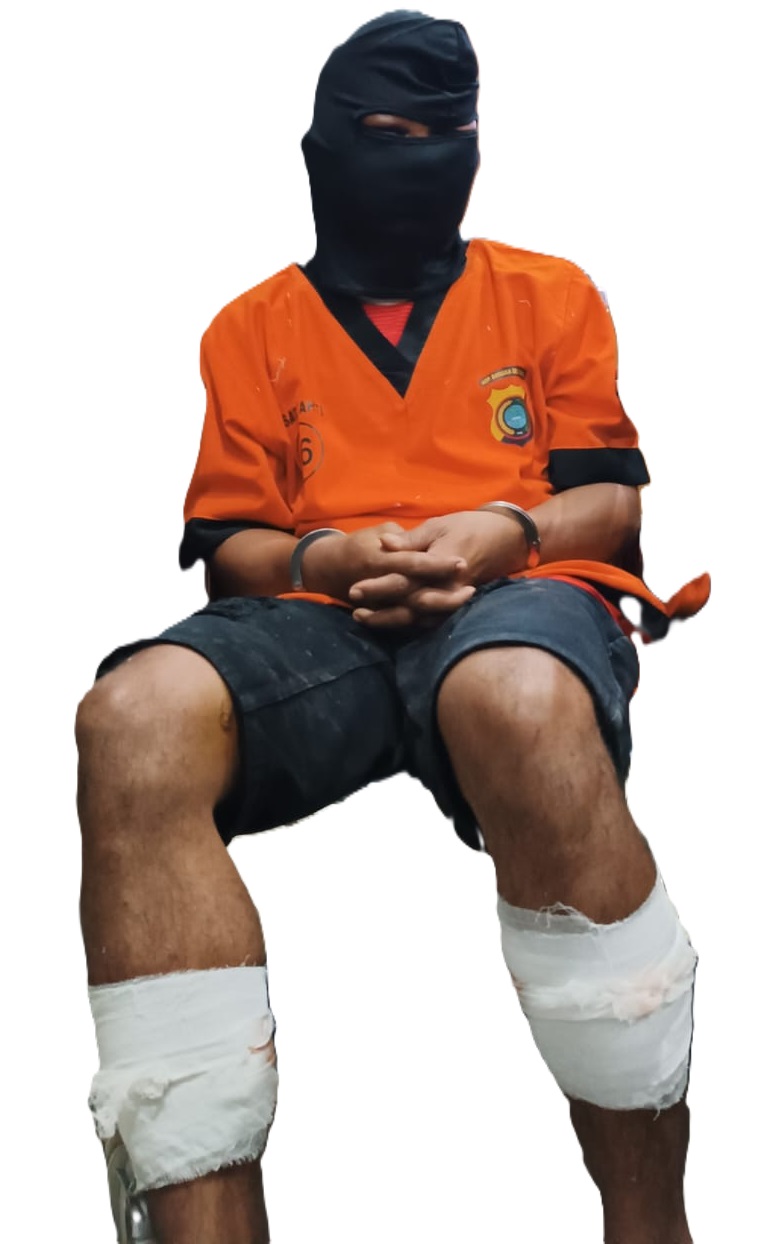 "Kami berhasil mengamankan tersangka di Simpang Ramayana setelah hampir 4-5 hari menyelidiki. Saat proses penangkapan, dia melawan sehingga polisi terpaksa menembak kedua kakinya untuk mencegah pelarian," ujar Kombes Pol Max Mariners.